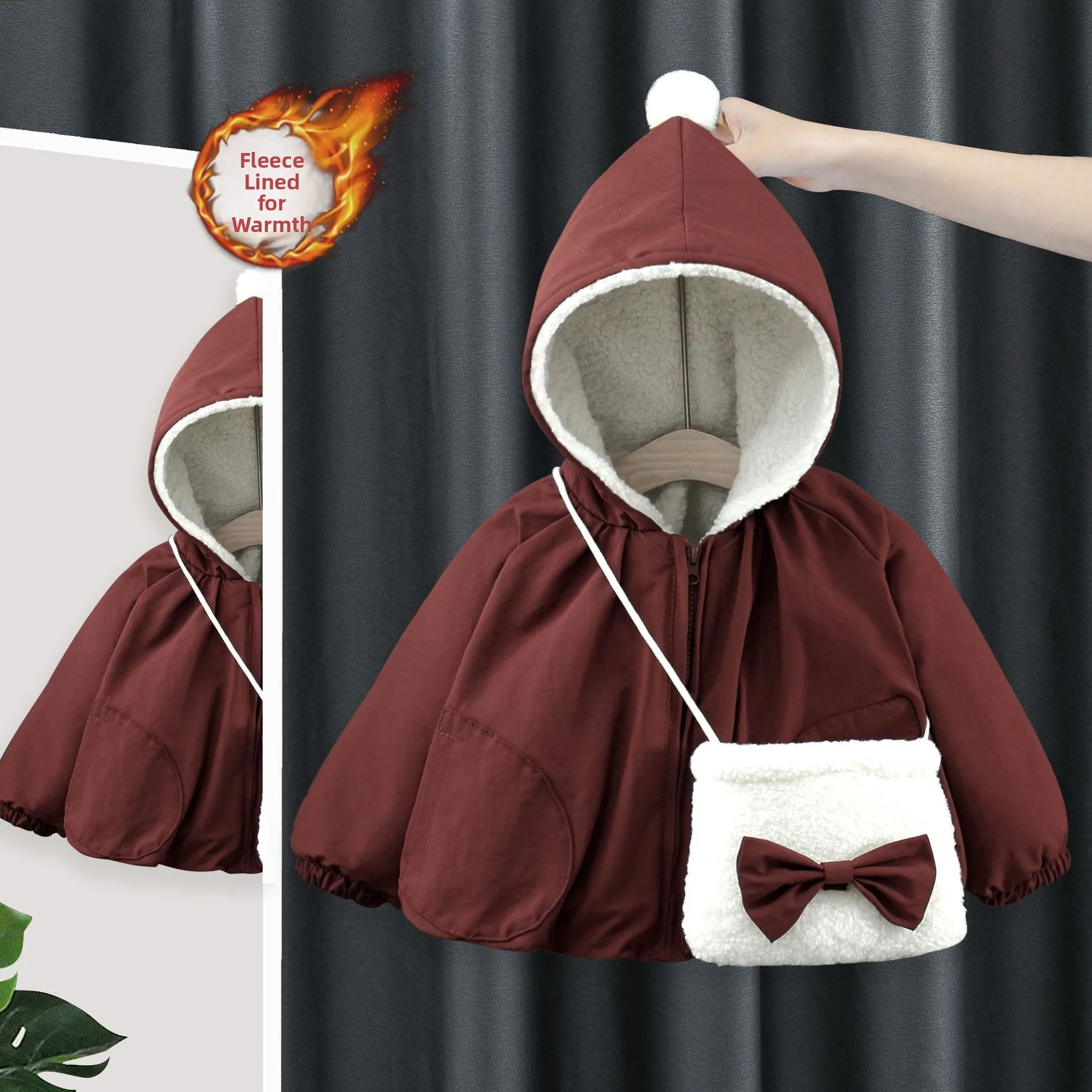 Thiened Fce Children's Cotton Jaet Winter Warm Baby Coat Toddler Boys Girls Padded Cotton Parka Pure Color with Bag