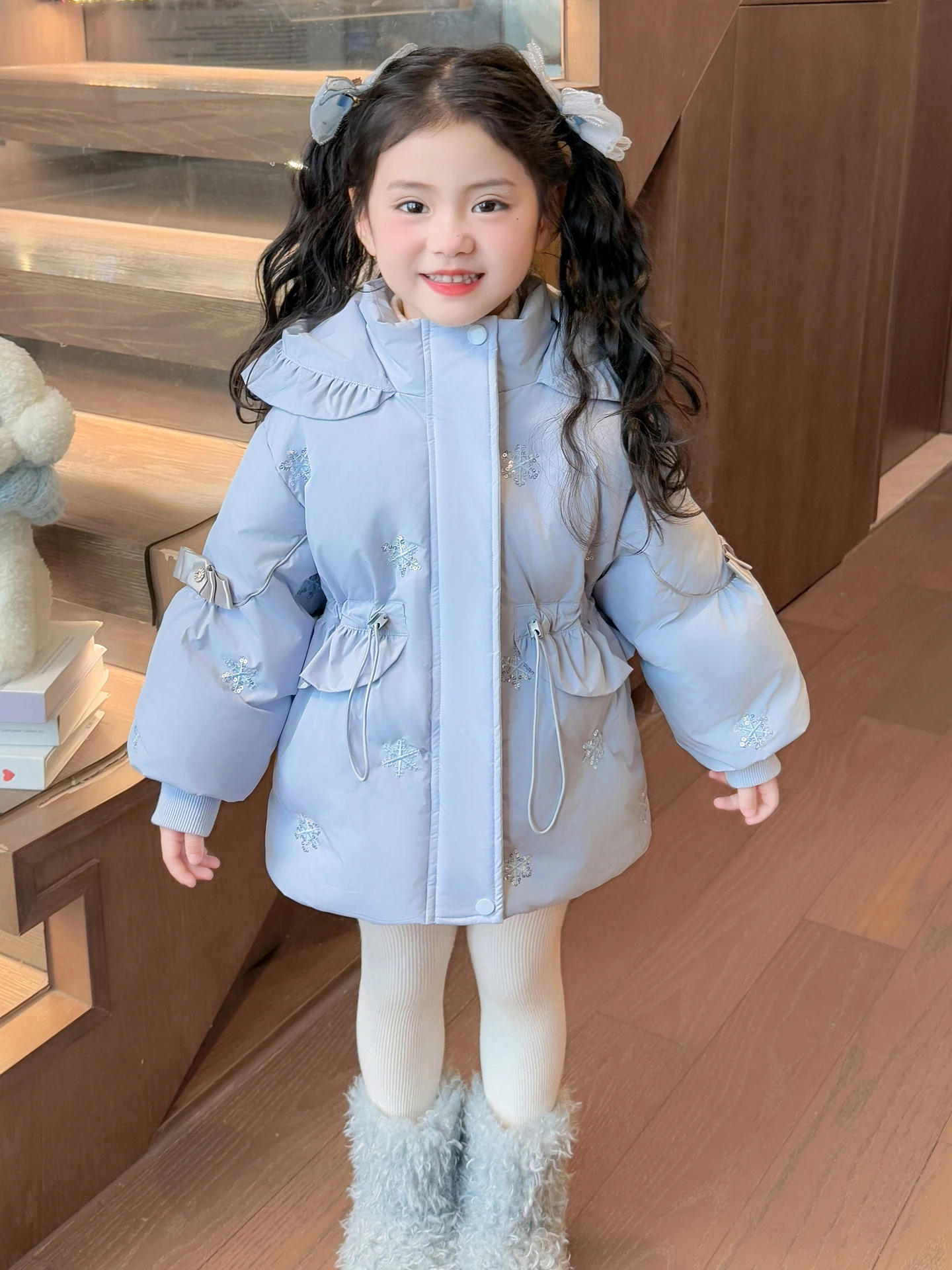 Girls Thiened Cotton Jaet Winter Warm Outerwear Hooded Coat Children's Faionable Clothing Princ Sle Long Sve Zi...