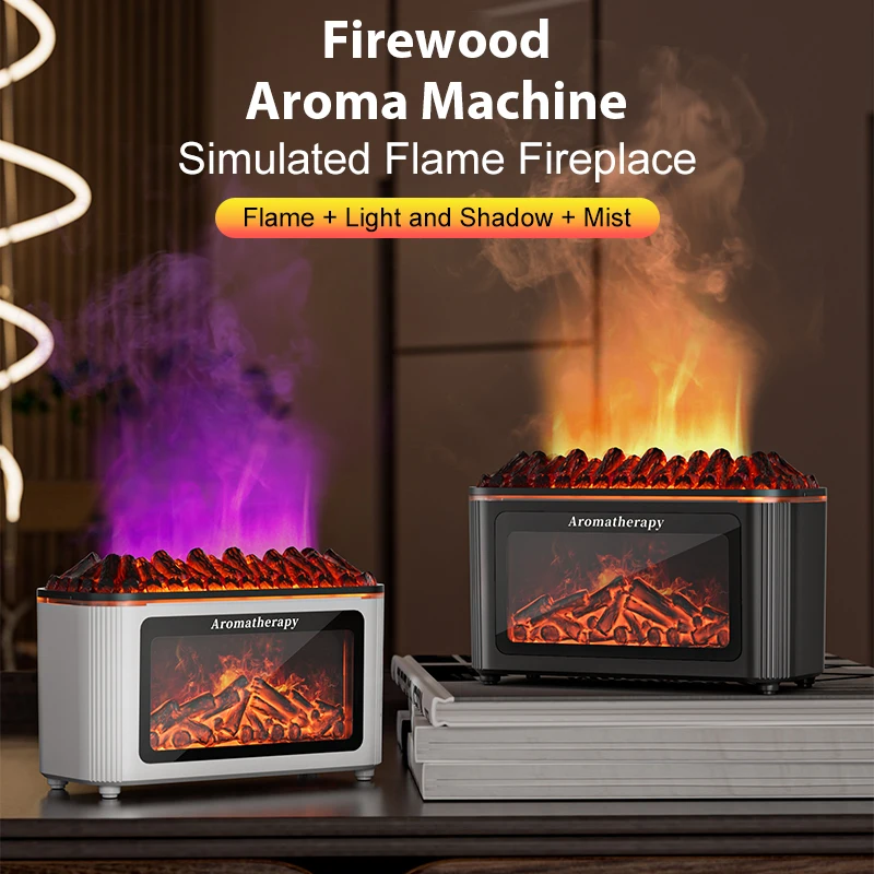 Simulated Fireplace Aroma Diffuser with 7-Color Flame Effects, Retro-Style Charcoal Design, Essential Oil Diffuser for Home Use