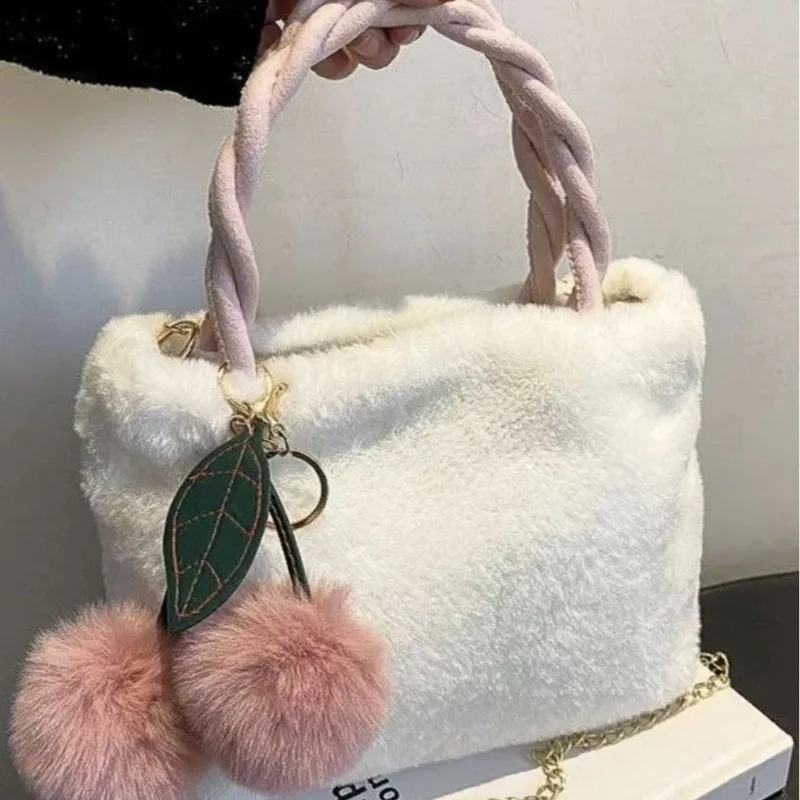 Cute Cherry Girl Plush Handbag Women's New Autumn and Winter Furry Shoulder Messenger Bag Fashion Furry Small Bag