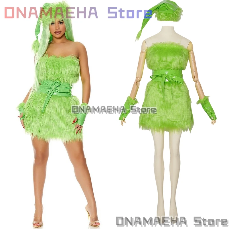 Christmas Green Furry Dress Monster Cosplay Costume{ONAMAEHA}Christmas costume woman Anime Carnival Theme Party Dress Up Girl