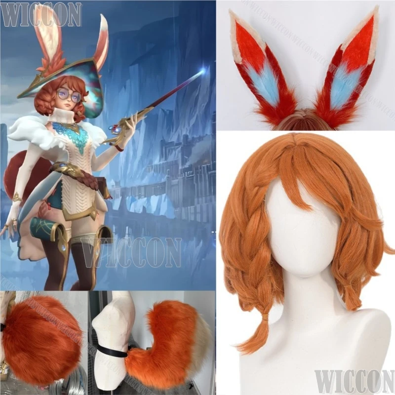 Game 101 Aurora Fox Girl Cosplay Orange Braid Wig Woman Cos Furry Fur Ears Tail Prop Cute Animal Girls Halloween Party Comic Con