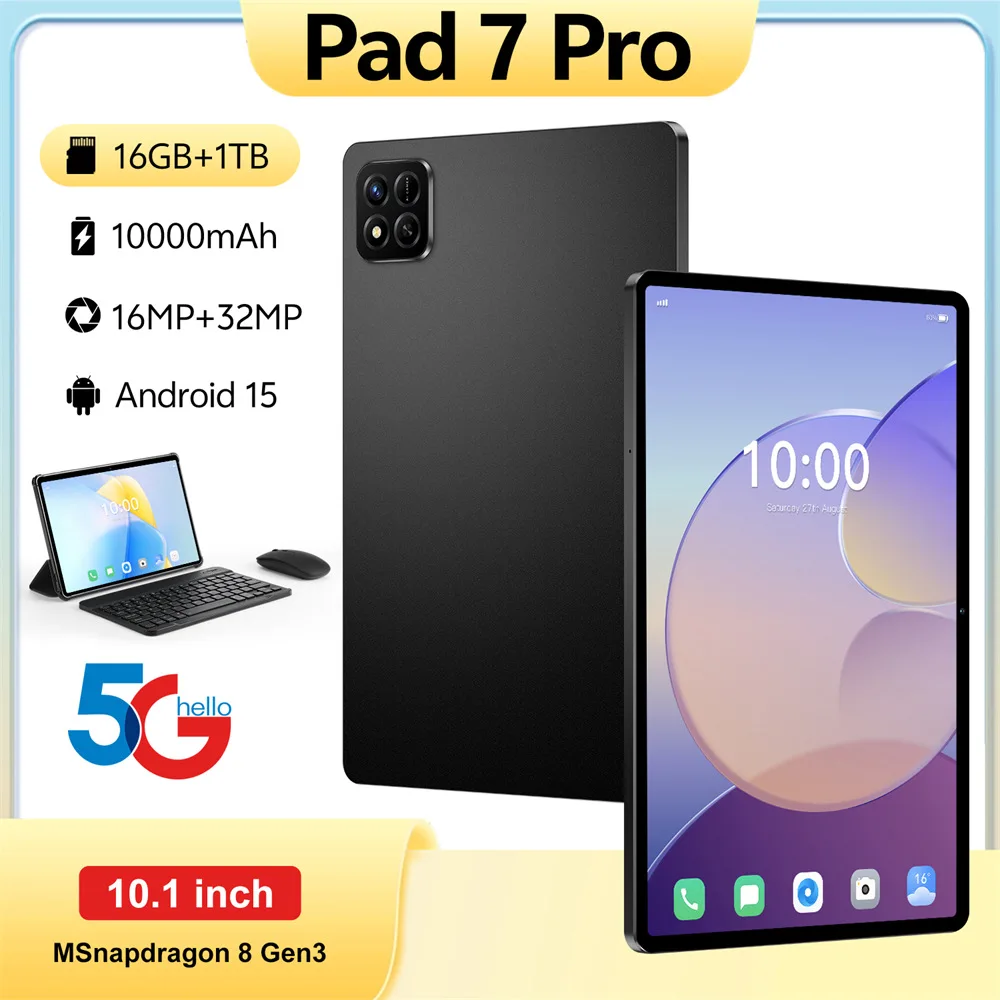 Hot New Pad 7 Pro 10000mah Tablet PC Global Version HD 10.1 Inch Android 22GB+2TB Tablets 5G Dual SIM WIFI Tab for Kids