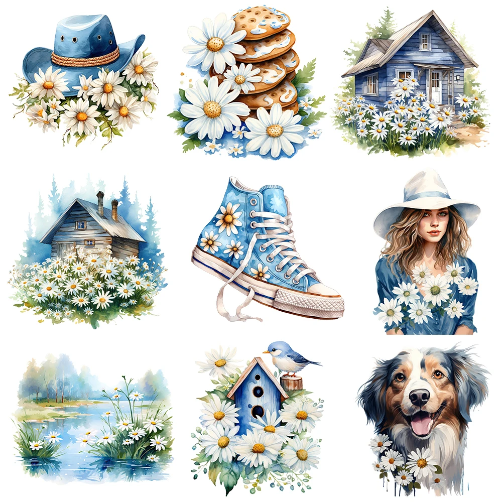 25cm Little Daisy Flower Cowboy Ironing Heat Thermal Transfer Sticker Fusible Applique Iron On Thermoadhesive Decal For Clothes