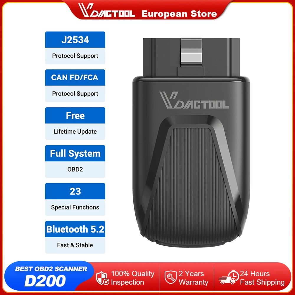 2025 VDIAGTOOL D200 Bluetooth OBD2 Scanner Lifetime Free Update All System Car Diagnostic 23 Reset J2534 FCA OBD2 Code Reader