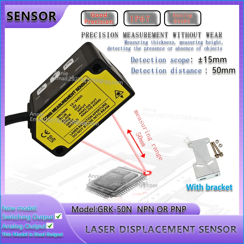 Measuring distance 50mm Output NPN CMOS IP67 Measure the thickness of an object Laser displacement sensor