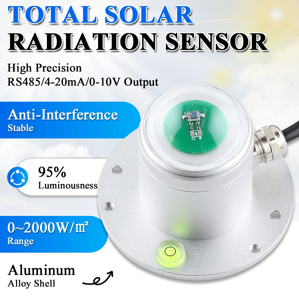 Total Solar Radiation Sensor RS485 0-5V 0-10V 4-20MA Output Radiation Transmitter Monitors Meteorological oOutdoor Irradiance