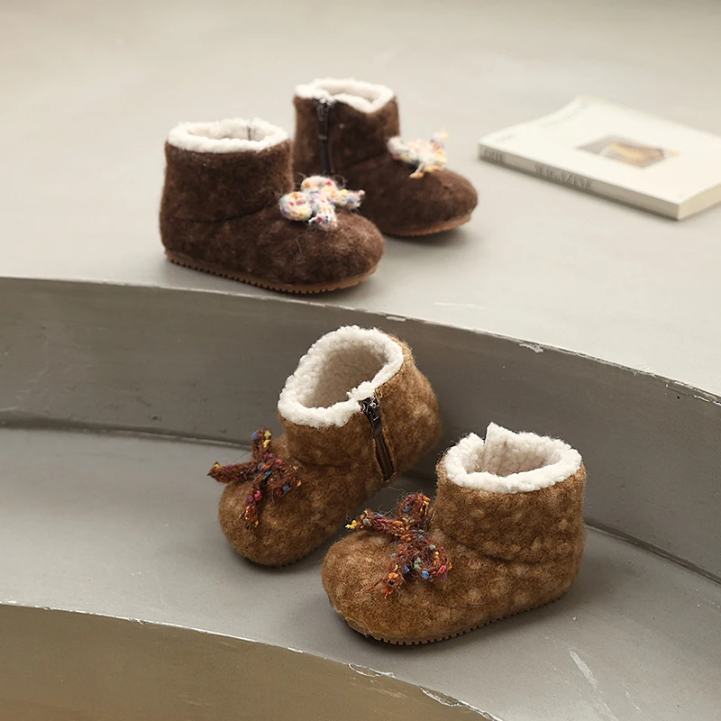 New Girls Plush Boots Winter Sweet Bowknot Children Fashion Ankle Short Boots Warm Furry Soft Kids Causal Princess Cotton Boots
