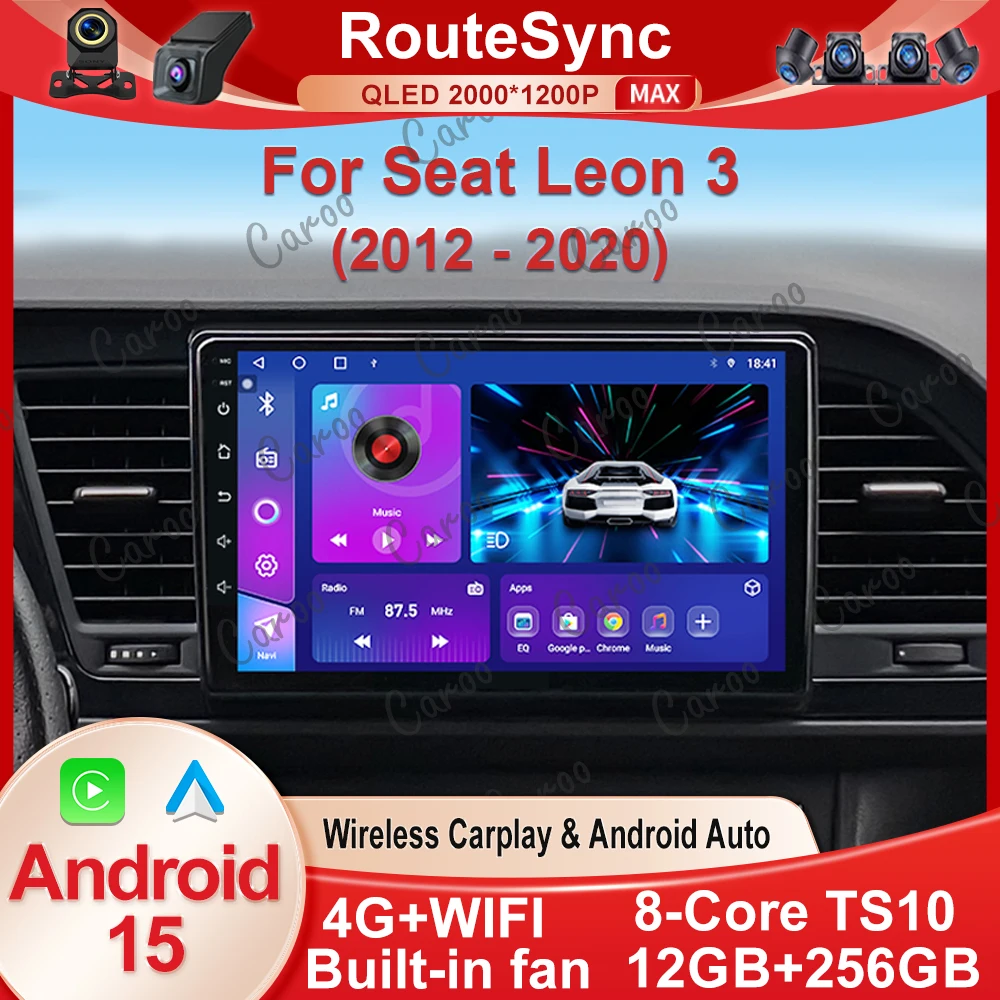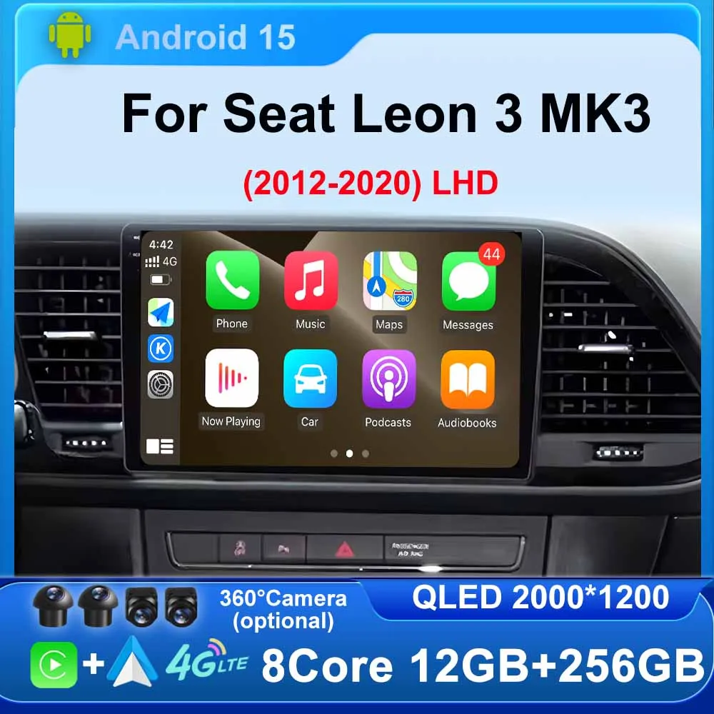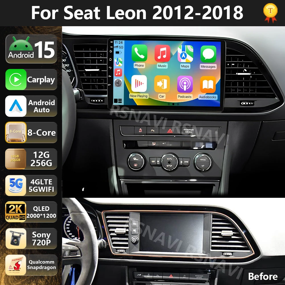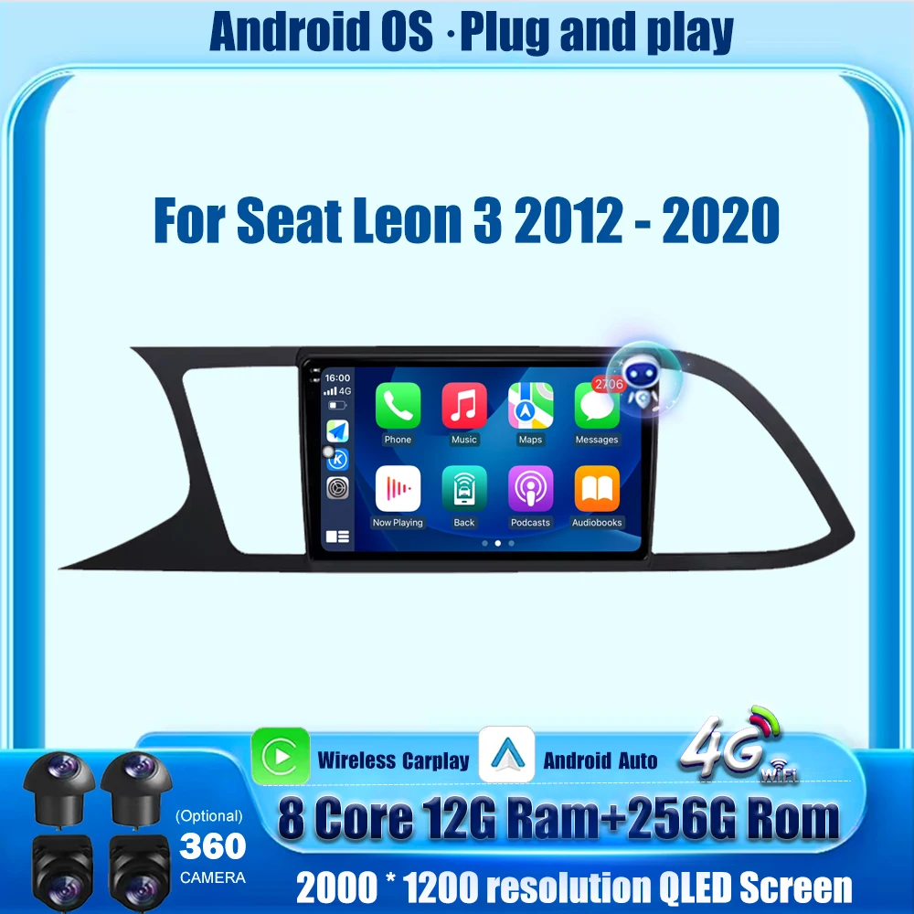 Android 15 WIFI+4G Carplay Auto For Seat Leon 3 MK3 2012-2021 Car Radio GPS Navigation Multimedia Video Player Stereo 360 Camera