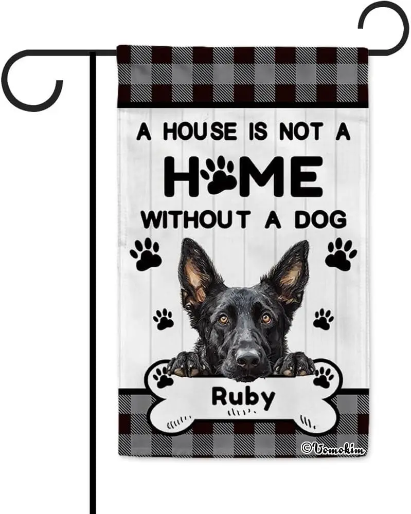 Vomokim Personalized Dutch Shepherd Dog Bone Garden Flag Paw Prints Pliad Check Outdoor Yard Porch Hanging Flag Farmhouse Ho IIZ