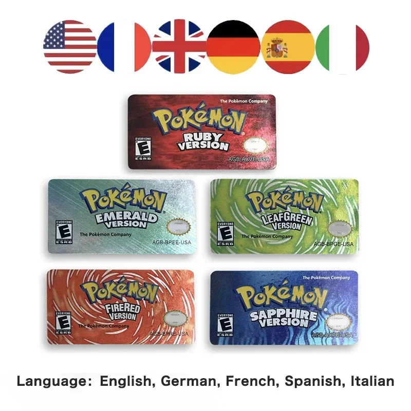 usa ita esp fra eur noe Glitter-Label pokemon Emerald Sapphire LeafGreen Firered Ruby game cartridge stickers for gba