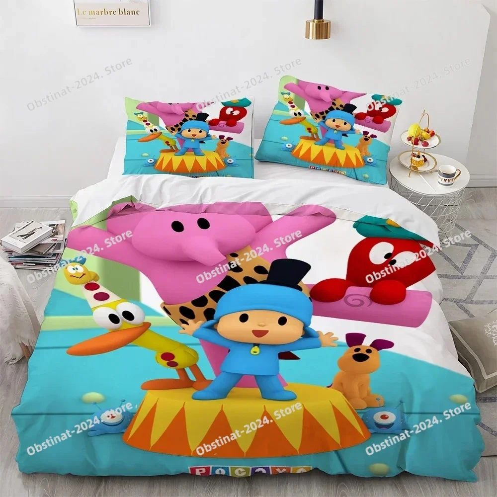 3D Print P-POCOYOS Kawaii Cartoon Bedding Set,Duvet Cover Bed Set Quilt Cover Pillowcase,King Queen Twin Size Boys Girls Adults
