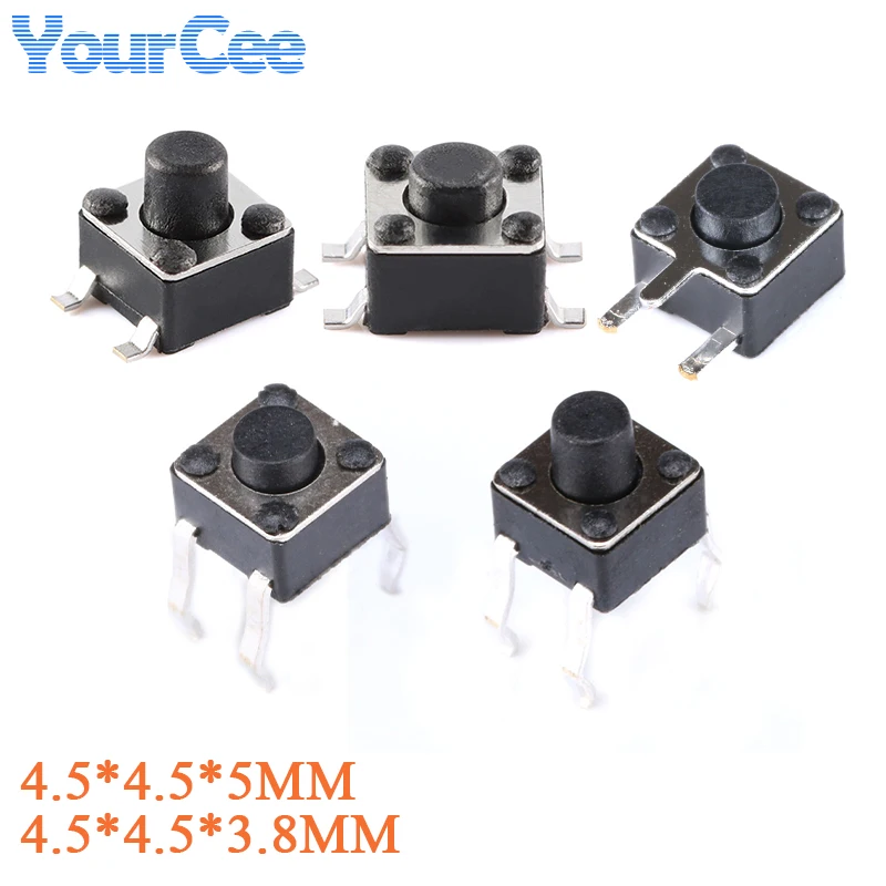 100PCS 4.5×4.5 4.5*4.5 5MM 3.8MM Mini Tact Push Button Switch Micro Momentary Tactile Switch 4PIN 12V SMD DIP