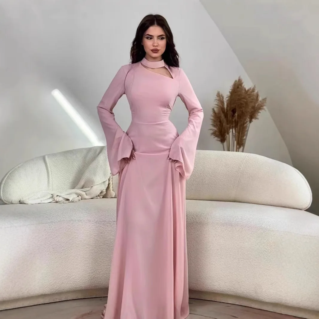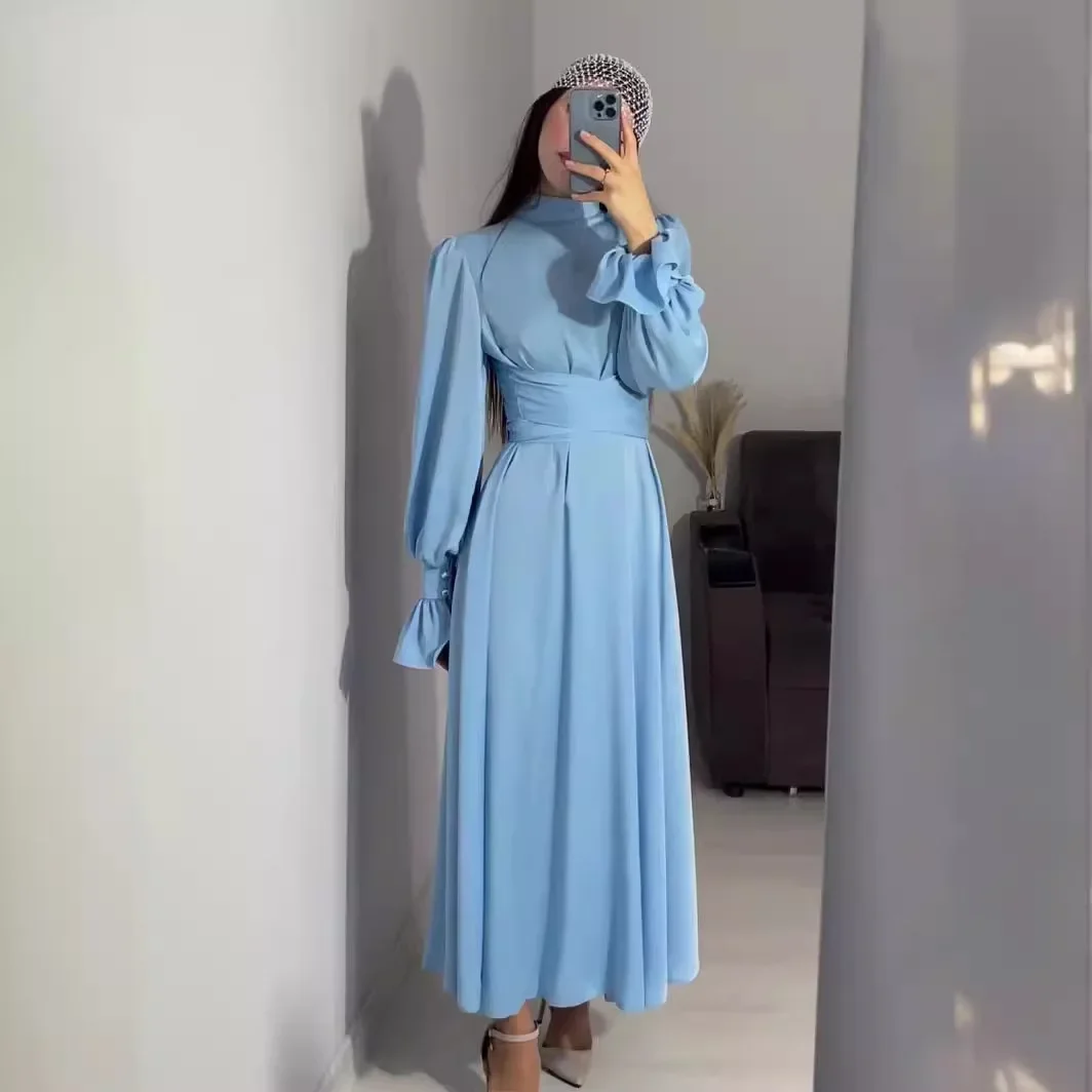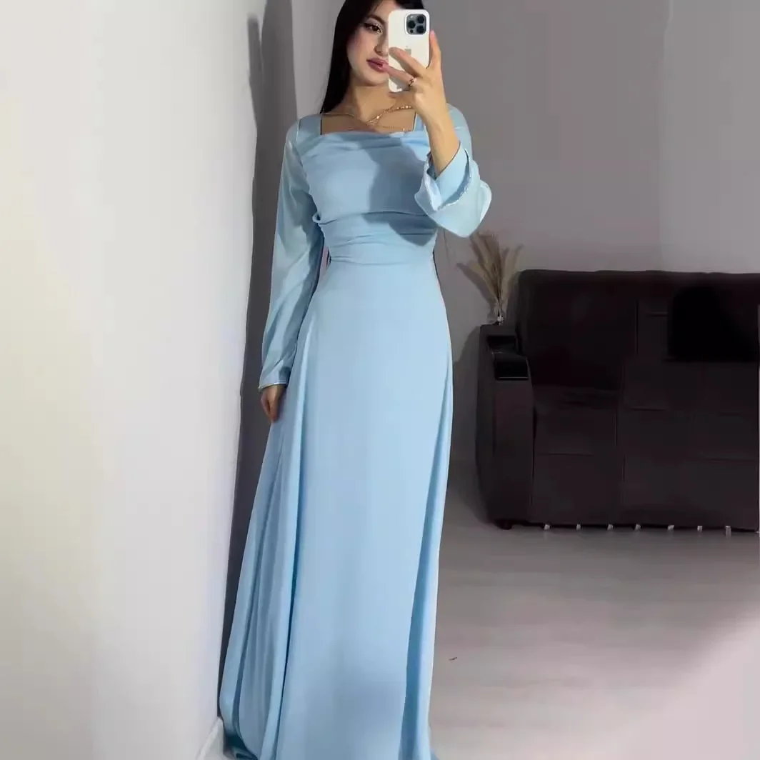 Autumn Women Sexy Dress New Dubai Robe Slim-fit Slimming Solid Color High Waist Elegant Party Dresses Female