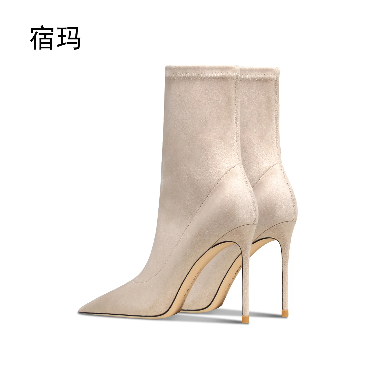 Apricot Suede Elastic Short Boots For Women 2025 New Fashion Pointed Toe Slim Heel Mid Length Boots Luxury Elegant Woman Shoes