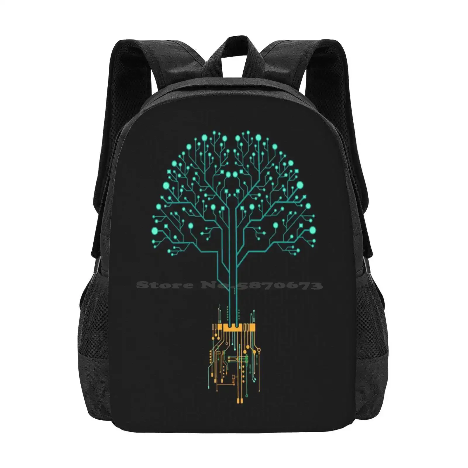 Tech Tree Pattern Design Bagpack School Bags Nature Wild Technology Life Micro Chip Hardware Software Connections Think Data