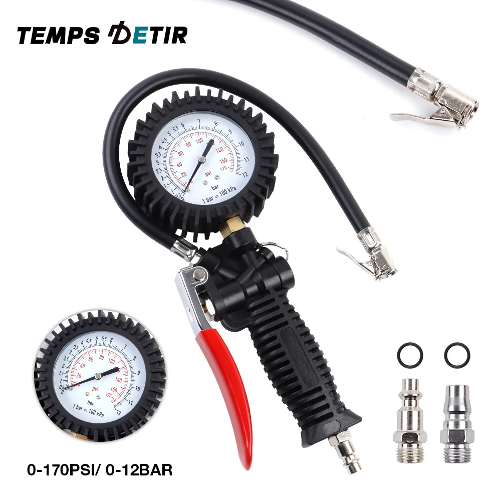 0-170Psi Tire Pressure Gauge, Oil-filled Tire Gauge, Shockproof, Accurate Vehicle Tester Inflation Monitoring, EU/US/JP Adapters