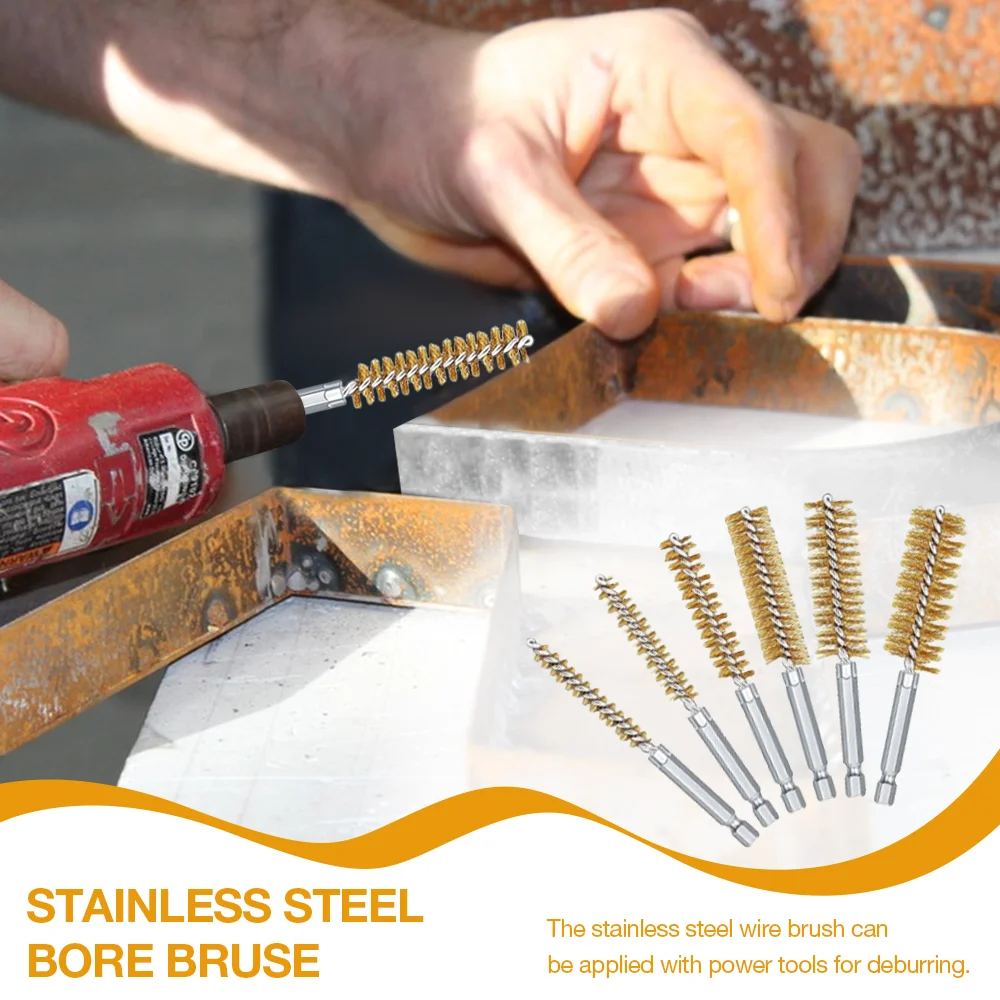 6Pcs Copper WireTube Cleaning Brush Set 1/4" Hex Bar Twisted Wire Hole Brush for Power Drill Impact Driver(8/10/12/15/17/19 mm)