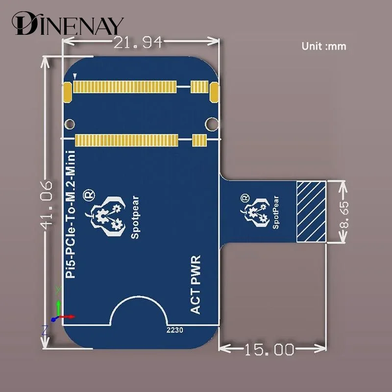 5 Channel PCIe to M.2 NVMe SSD Expansion HAT 2230 Industrial Grade Integrated FPC Differential Design for Multi Drive Expansion