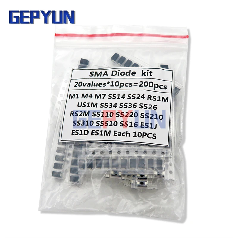 20value*10PCS=200PCS SMD diode Assorted Kit contains SS110 SS220 SS210 SS310 SS510 SS16 SS26 SS34 SS36 ES1J ES1D M7 M4 US1M