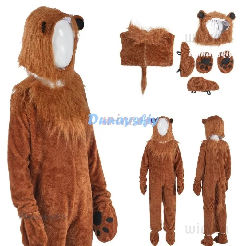 XT8Boys Girls Lion Cosplay Costume Adult Furry Animal Carnival Party Halloween Satge Cosplay Costume Fancy Movie Role JumpsXT6@!