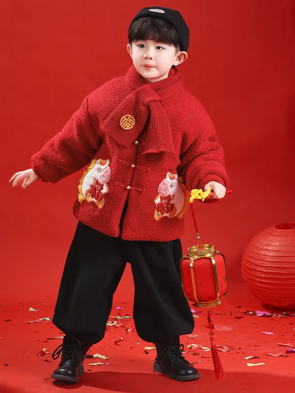 Thiened Cotton Children's Winter Jaet 2025 New Sle Long Sve Boys Girls Warm Furry Outerwear Trendy Ethnic Costume
