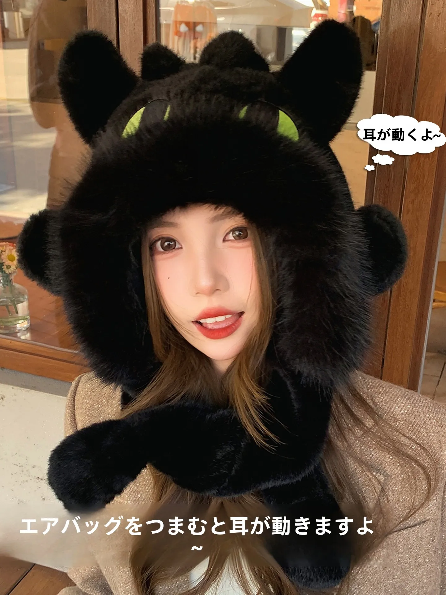Warm Furry Hat for Girls Winter Ear-Flap Hat Student Children Cartoon Design Adjustable round Top Cap ex Flat Brim Hat