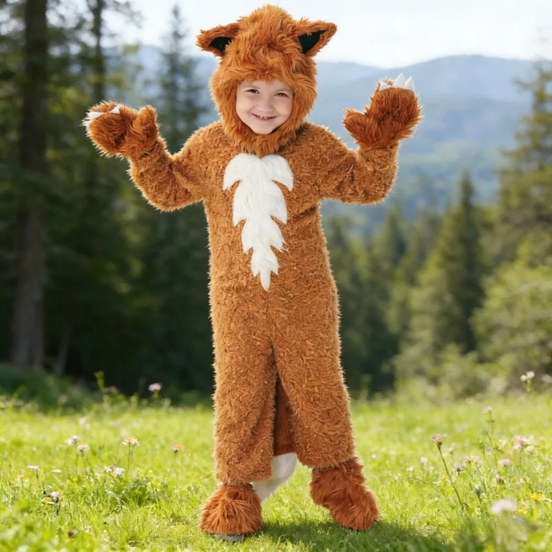 Cute Fox Cosplay Costume Animals Furry Jumpsuit for Boys and Girls Halloween Themed Party Rolepaly Stage Performances Outfit