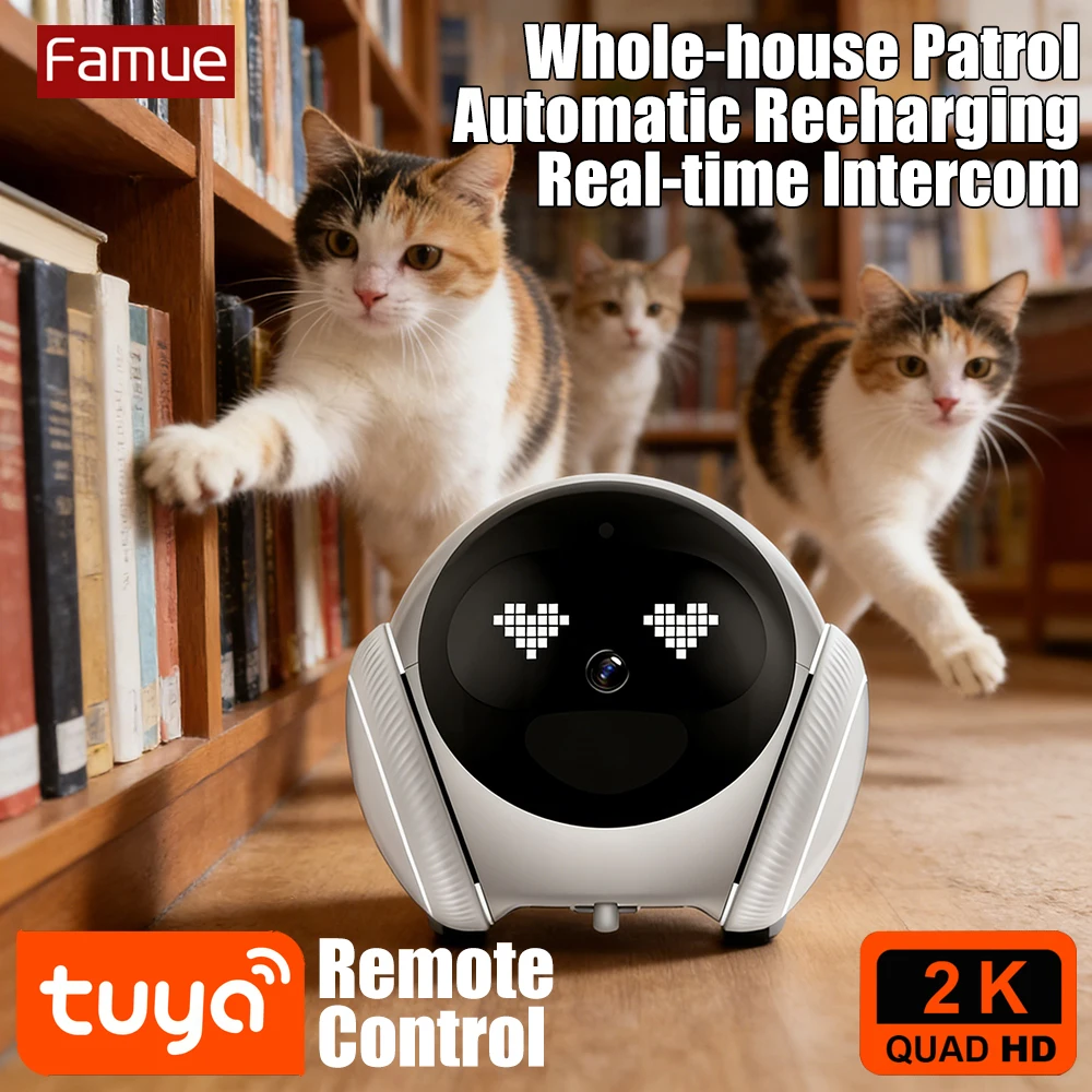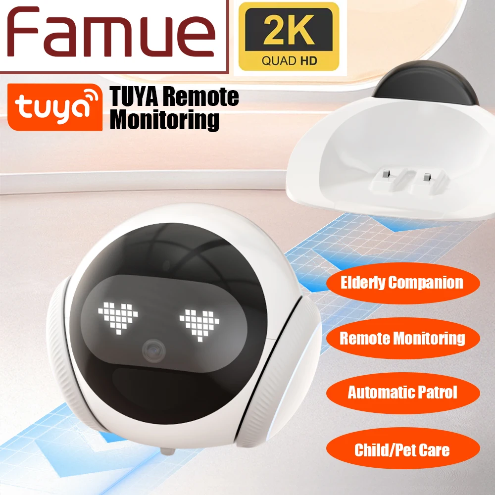 Famue Automatic Charging Robot Camera HD 2K 5G WIFI IP Camera Pet Mobile Tracking Night Vision CCTV Remote View TUYA APP Camera
