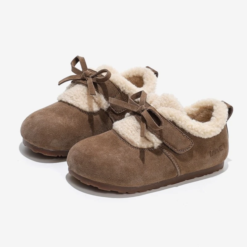 New Winter Children Causal Shoes Simple Bowknot Girls Fashion Cotton Shoes Outdoor Warm Furry Kids Princess Plush Shoes Non-slip