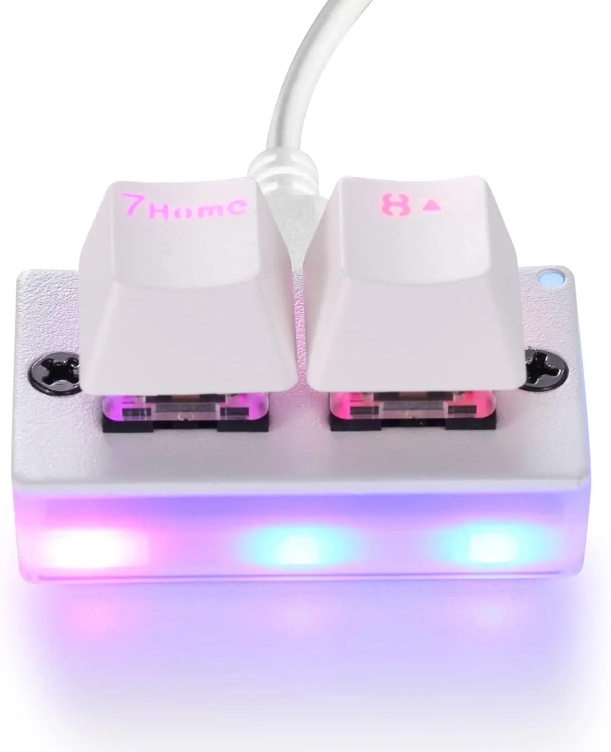 2-Key Gaming Keyboard, USB Mini 2-Key Keyboard, Mechanical Gaming PC Keyboards, Programming Macro with Software, RGB LED