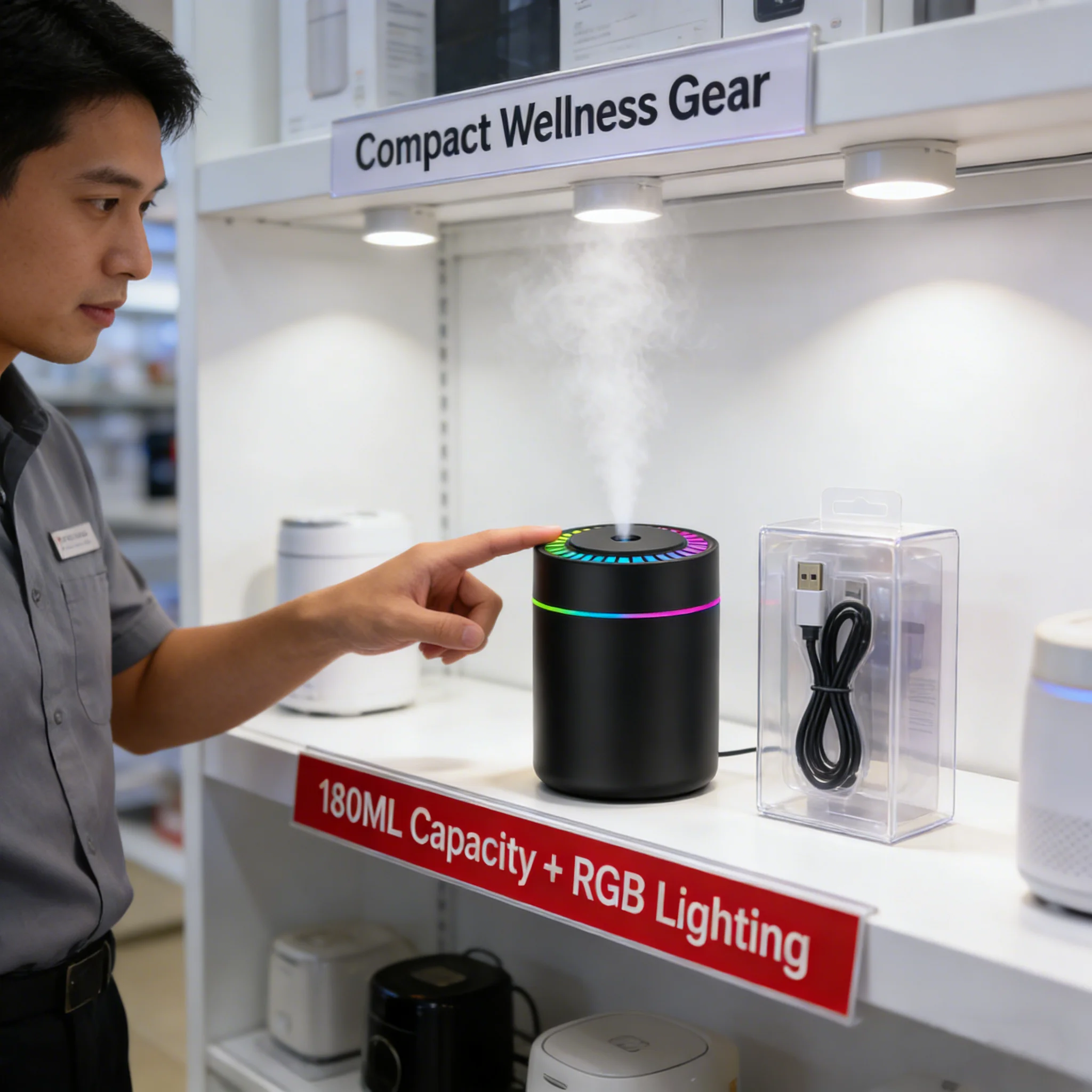 180ml Mini Air Humidifier USB - Ultrasonic Aroma Diffuser, Cool Mist Maker with Night Light for Car Home Office Bedroom