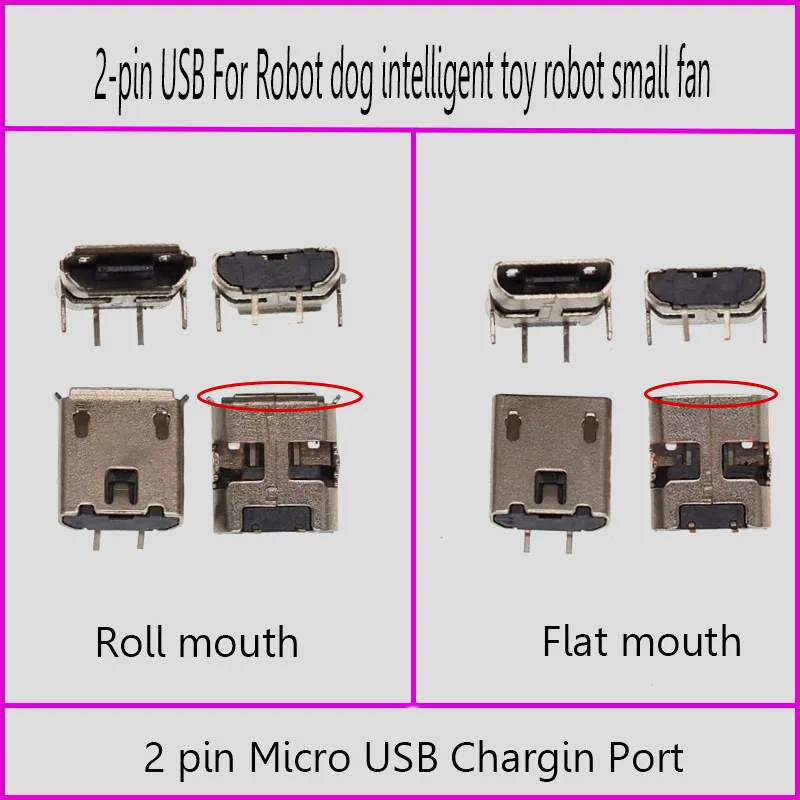 2-5PCS Micro 2Pin USB Charging Data Port For Robot Dog Intelligent Toy Robot Small Fan 2-pin Android Phone Tail Plug Connector