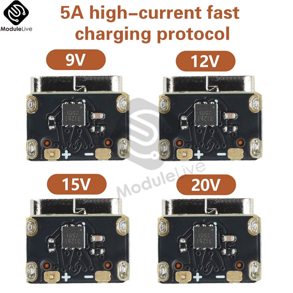 DC 9V/12V/15V/20V Mini Deceiver Fast Charging Module Fixed Voltage Output Voltage Trigger PD QC2.0 Fast Charging Module Type C