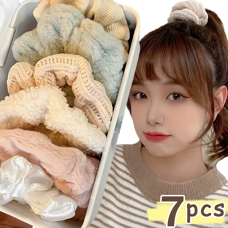 7Pcs/Set Velvet Candy Color Hair Scrunchies Women Girls Hair Band Rubber Bands Furry Ponytail Holder Hair Ties Accessories