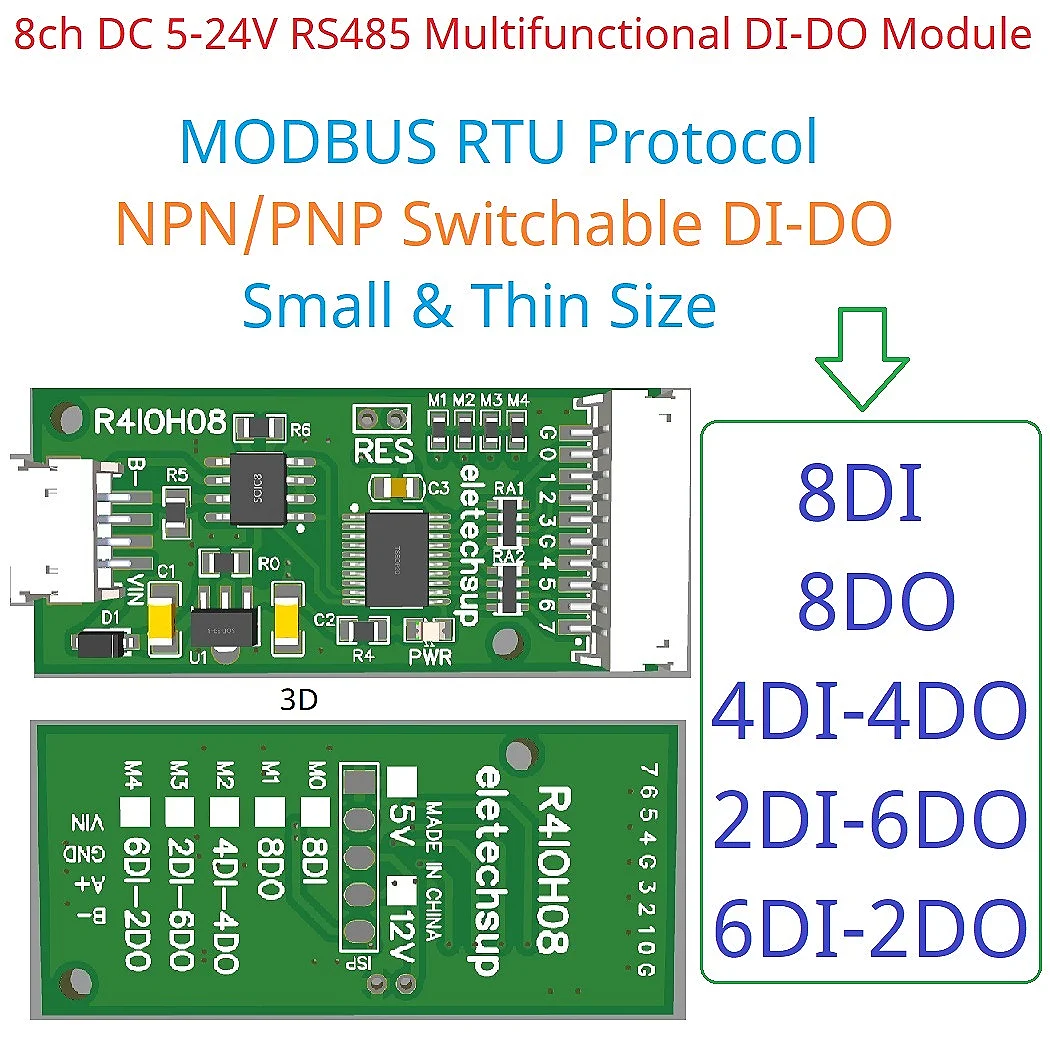 RS485 Digital IO Module 8 Channel Input Output for Industrial Automation Arduino PLC Control 12V 24V DC