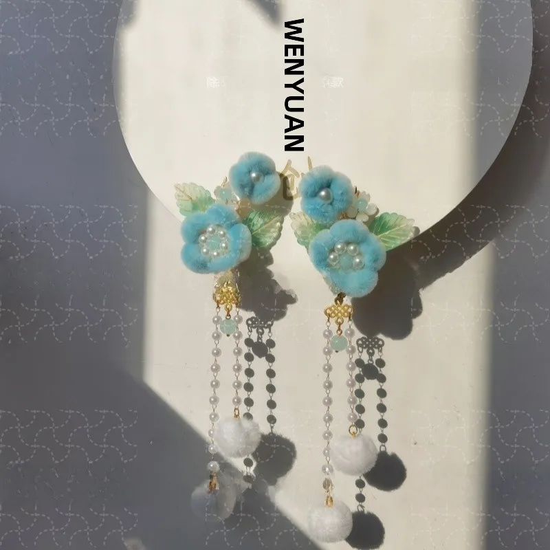Original Hanfu Velvet Flower Ancient Sle Hair Accories Tassel Furry Ball Flower Girls Hair Clips Hairpins Decorations