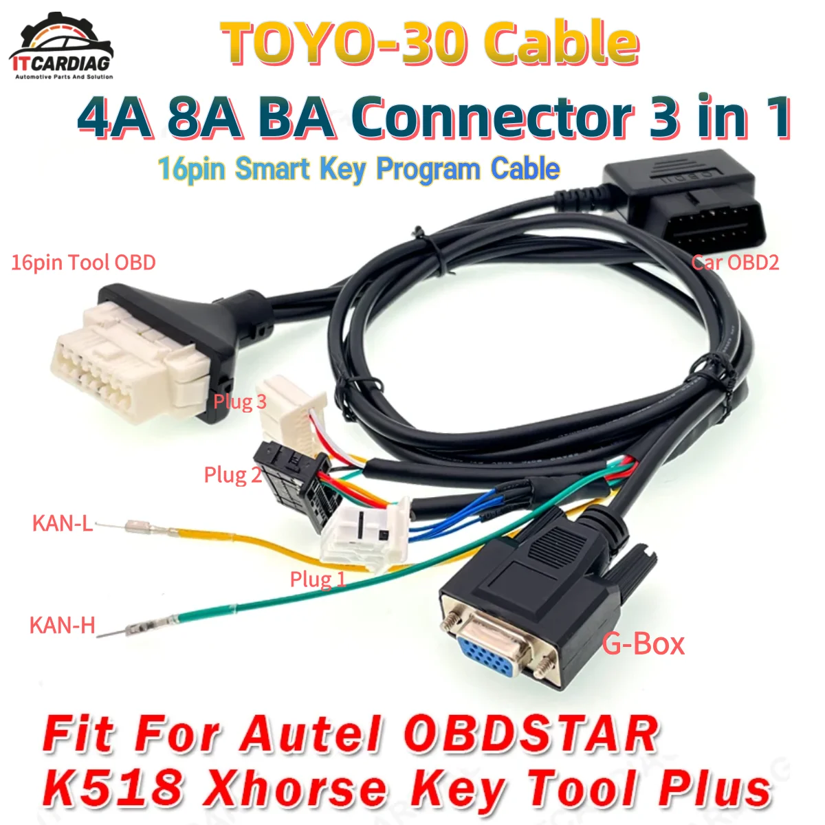 3 In 1 TOY30 Programming Connector 4A 8A BA Smart Key Program Cable for Toyota/Lexus for Autel OBDSTAR K518 Xhorse Key Tool Plus