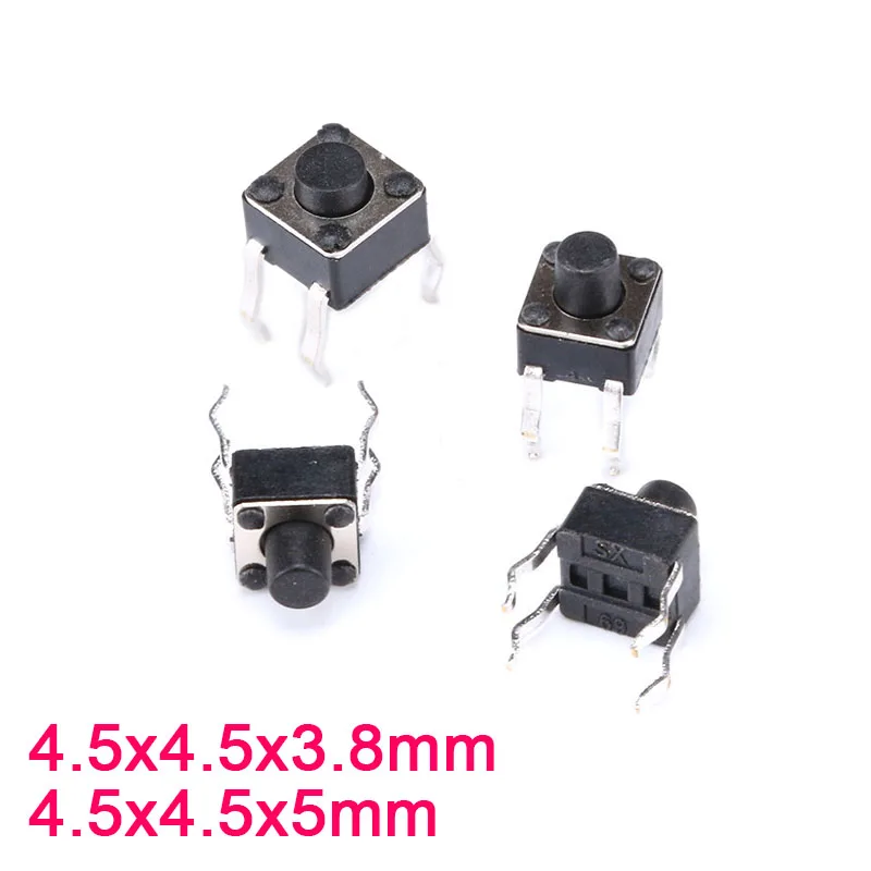 100Pcs/10pcs Micro Switch 4.5x4.5x3.8mm 4.5x4.5x5mm 4P Momentary DIP Tactile Tact Push Button 4 Pin 4.5*4.5*3.8mm 4.5*4.5*5mm
