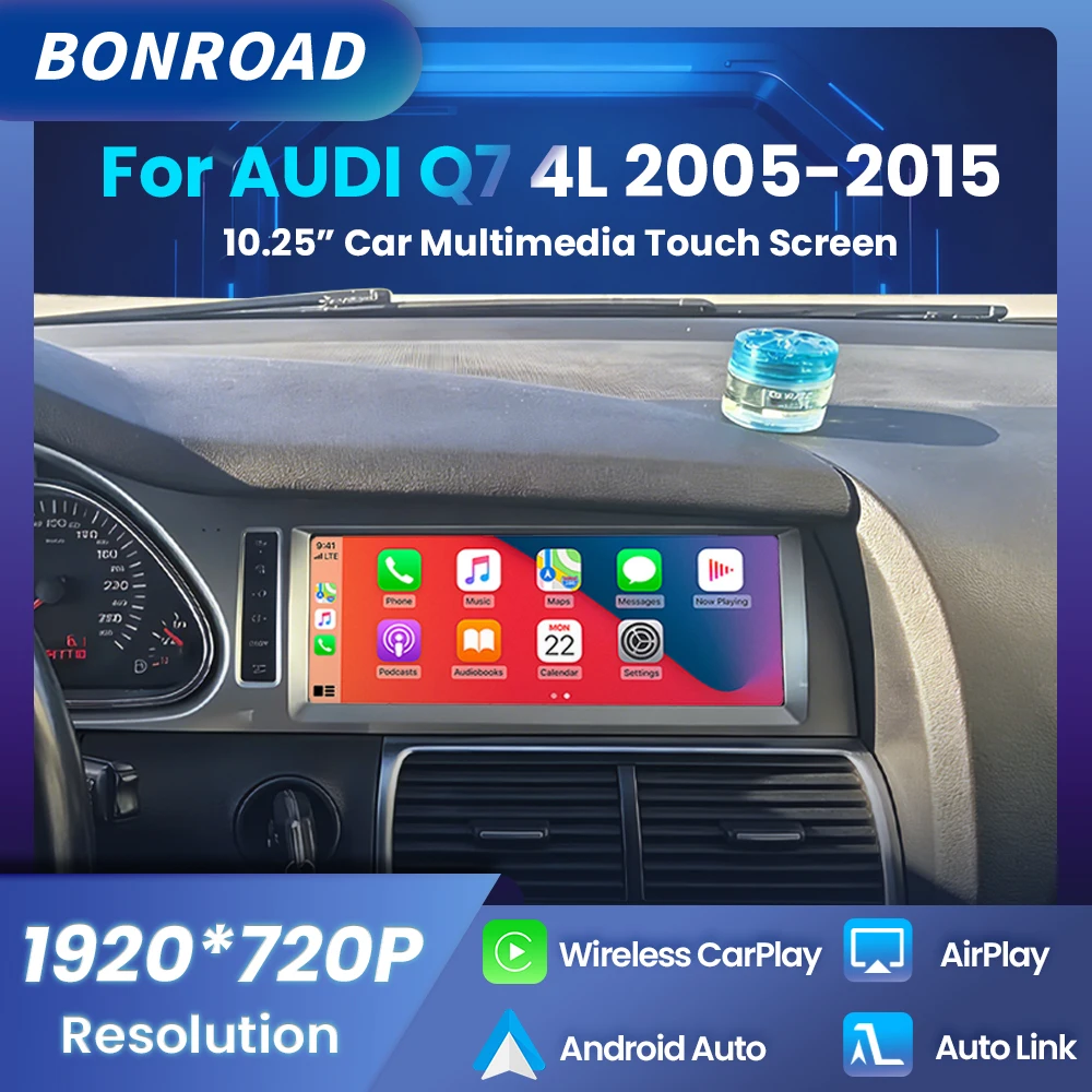 BONROAD 10.25" Car Radio Player Wireless CarPlay Android Auto Multimedia Touch Screen For Audi Q7 4L 2005-2015 GPS Bluetooth 5.0