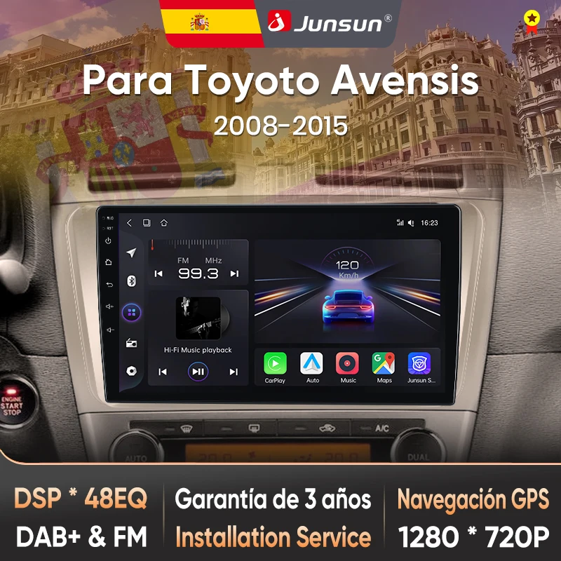 Junsun Radio Voz AI para Toyota Avensis T27 2008-2015 CarPlay inalámbrico Android Auto autoradio 2DIN con Bluetooth DAB+ GPS RDS