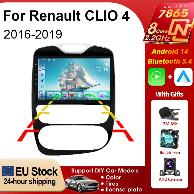 Srnubi 2 Din For Renault Clio 4 2016-2019 Car Stereo Wireless CarPlay Android Auto GPS Navigation Bluetooth DIY Theme DSP EQ