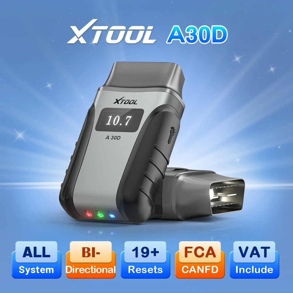 XTOOL A30D V2.0 OBD2 Scanner Full System Car Diagnostic Tools with Android / iOS APP OBD Bidirectional Control Scanner 8-IN-1 Live Data FCA Autoauth CAN FD Protocol 19+ Resets Lifetime Free Software Update