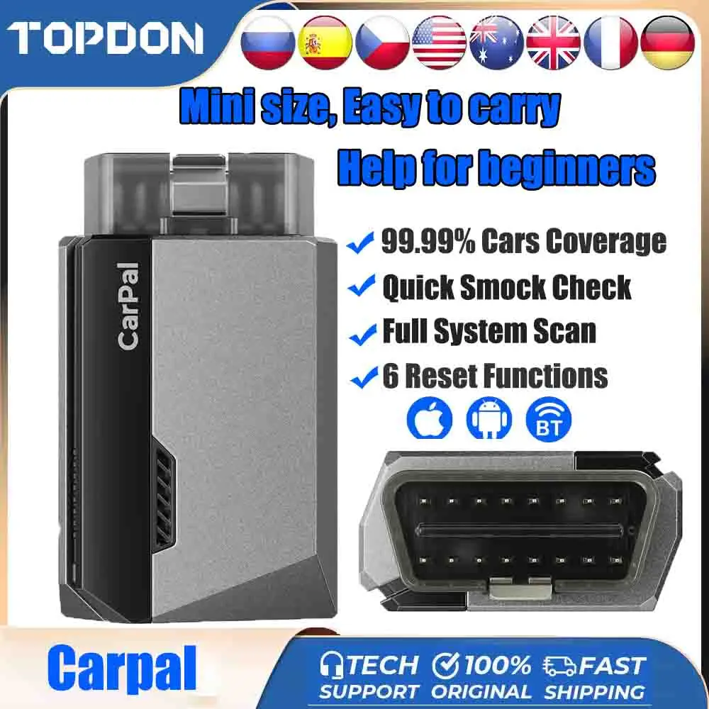 TOPDON Carpal OBD2 Scanner Bluetooth for Car All System Diagnostic Tool iOS Android Vehicle Health Check 6 Reset Services