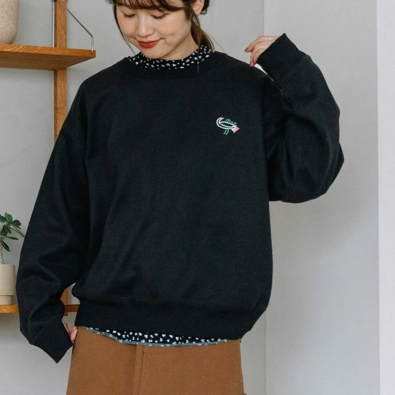New 26 Japanese Sle Long Sve Embroidered Dog Fi Bird Casual Loose Fit Sweater for Women round Ne Cotton Sweatirt