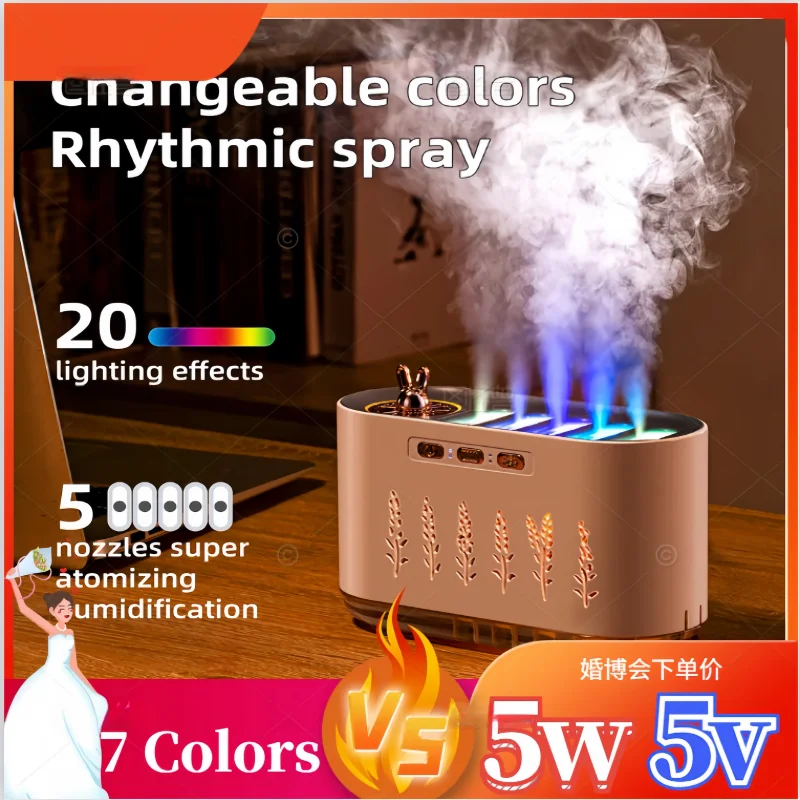 700ml Air Humidifier Dynamic Audio Essential Oil Diffuser Timer 7 LED Lights Aromatherapy Mist Maker Humidifier with 5 Nozzle Ca