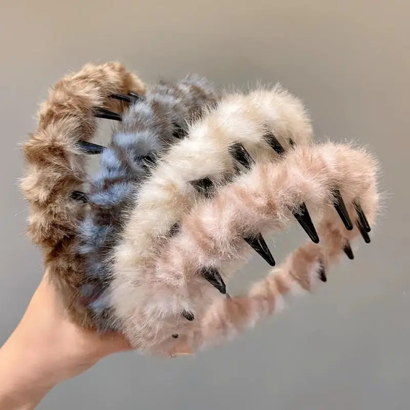 Funny Plush Hair Claw Furry Barrette Crab Headwear Winter Hair Clip Cartoon Eyes Cute Sweet Hairpin Women Girl Hair Accessory