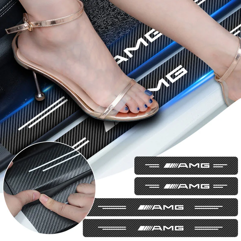 4Pcs Car Door Plate Carbon Fiber Threshold Protector Sticker Decals for Mercedes Benz W251 AMG W211 A B C R G Class W204 W210