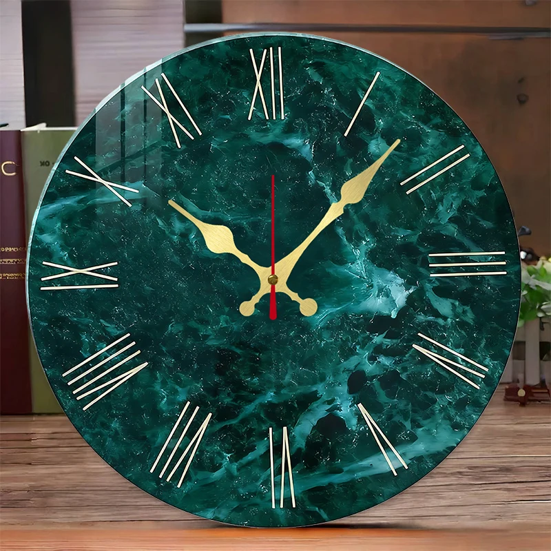 Teal Marble Texture Wooden Round Silent Hanging Wall Clock, Suitable For Living Room, Office,Study Room,Bedroom, Home Decoration