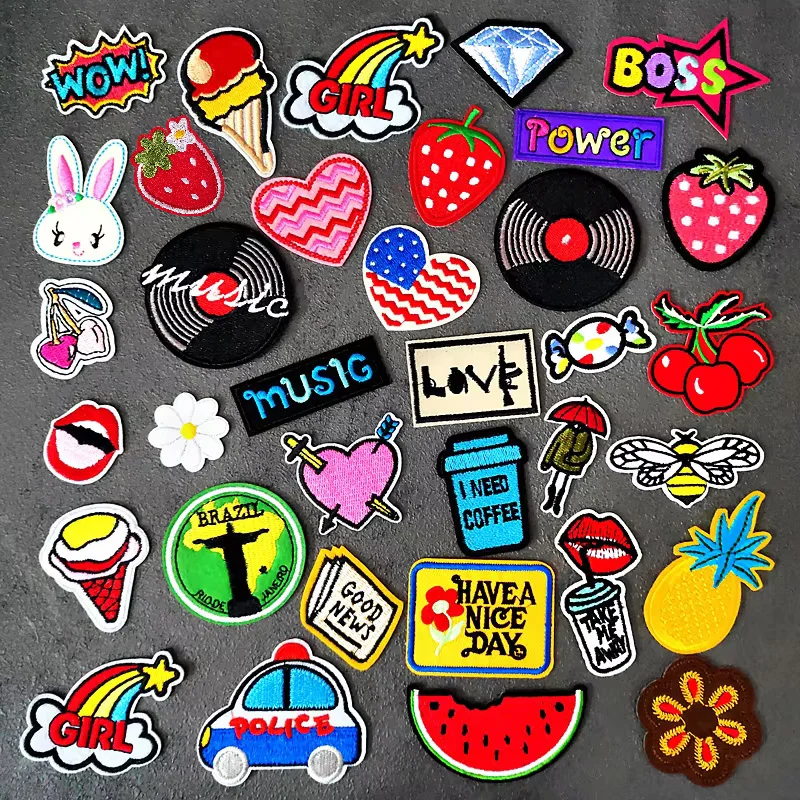Power Music Lobe Heart DIY Iron On Patches Embroidery Applique Clothes Sewing Supplies Decorative Badges Stickers Flower Rabbit